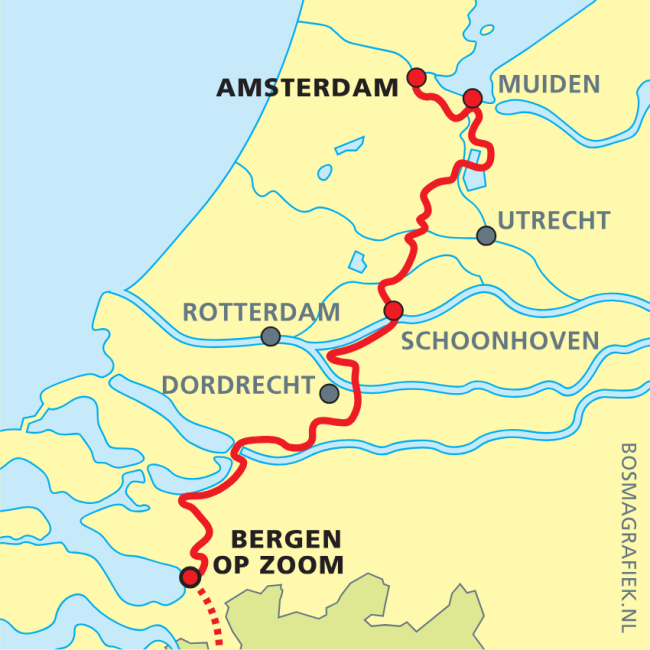 Het Floris V-pad is het eerste deel van de internationale route die van Amsterdam naar Parijs voert. In Bergen op Zoom sluit de route aan op de GR12, waarmee je je wandeling kunt vervolgen richting Parijs.