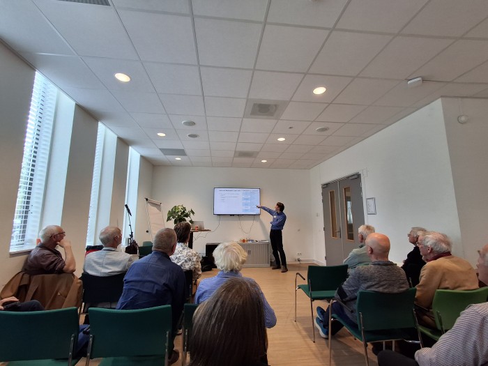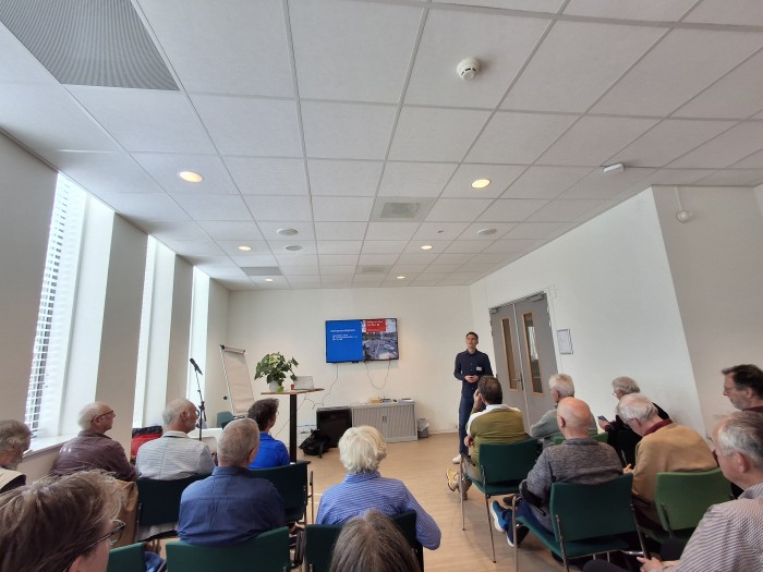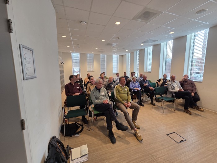 De aanwezigen luisteren aandachtig naar de uiteenzetting van Frank Hart (Wandelnet) over het NML © Cas van Hardeveld