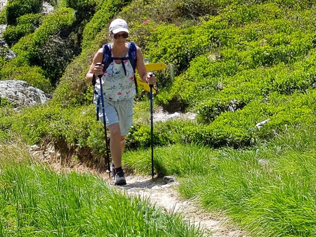 Als ik haar spreek wordt meteen duidelijk dat zij een veelzijdig mens is. Ze liep al meerdere lange-afstand-wandelpaden en bracht al heel wat vakanties wandelend door. Regelmatig is ze reisbegeleider op wandel- of fietsreizen bij Aktiva Tours en Lopend Vuurtje. Bij deze single-reizen ontstaat al gauw een band binnen een toch erg diverse groep die één gemeenschappelijk iets heeft: wandelen of fietsen en daarvan genieten. “Als IVN-natuurgids vertel ik ook regelmatig iets over opvallende natuurverschijnselen.” Op ad-hocbasis treedt ze op als docent en examinator binnen mbo-opleidingen voor volwassenen in de vakken sport en bewegen, Nederlands en Engels. Gemiddeld eens per maand is ze gastvrouw bij ‘Only Friends Utrecht’, een sportclub voor jongeren met een beperking . “Uiteraard hoort zelf bewegen er ook bij. Ik wandel, fiets, doe aan yoga en fitness.” Op de vraag of dat allemaal niet wat veel is, antwoordt ze lachend dat al die puzzelstukjes meestal goed in elkaar te passen zijn.